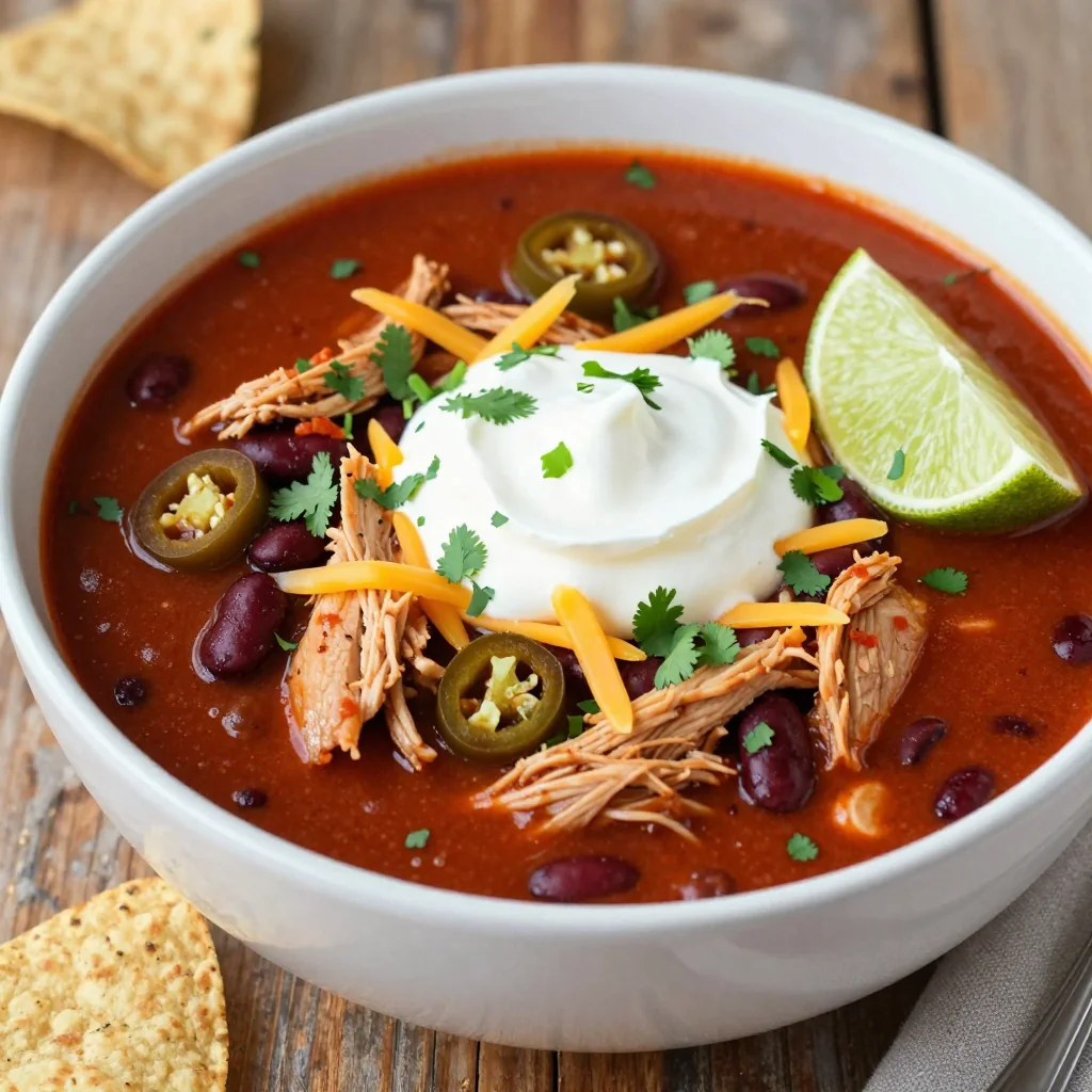 Add diced fresh jalapeño for bright bite, a handful of shredded sharp cheddar, a squeeze of lime, and crushed tortilla chips. Serve in pre-warmed bowls so the chili doesn’t tighten on contact.